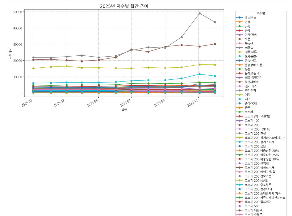 마지막으로 2025년 12개월의 월초 지수를 loop으로 수집해보면!!